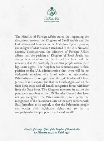 The Kingdom of Saudi Arabia published a statement on Feb. 7 refusing to normalise ties with Israel, declaring that: